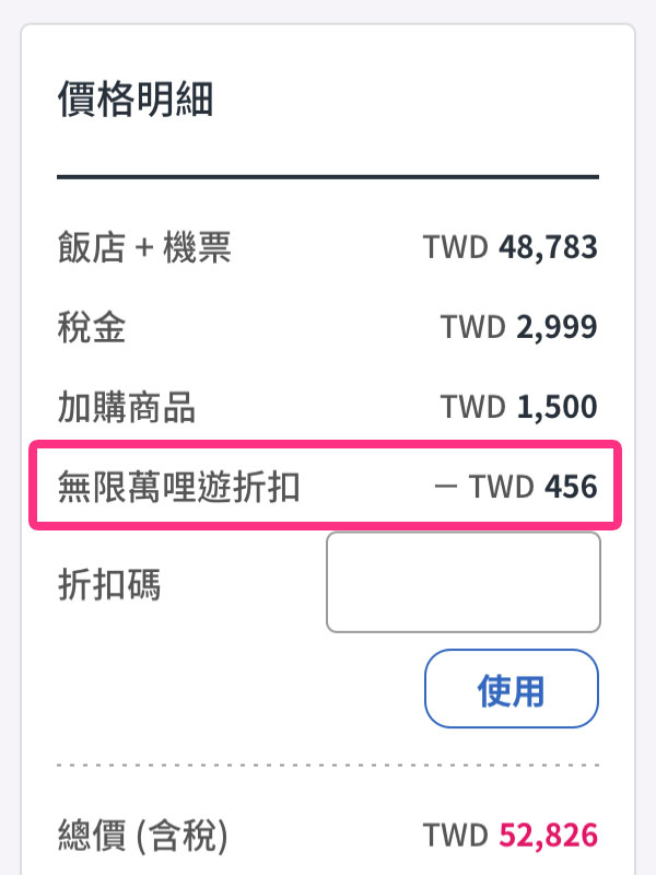 4. 折扣金額顯示於「確認價格」頁面,完成折抵。