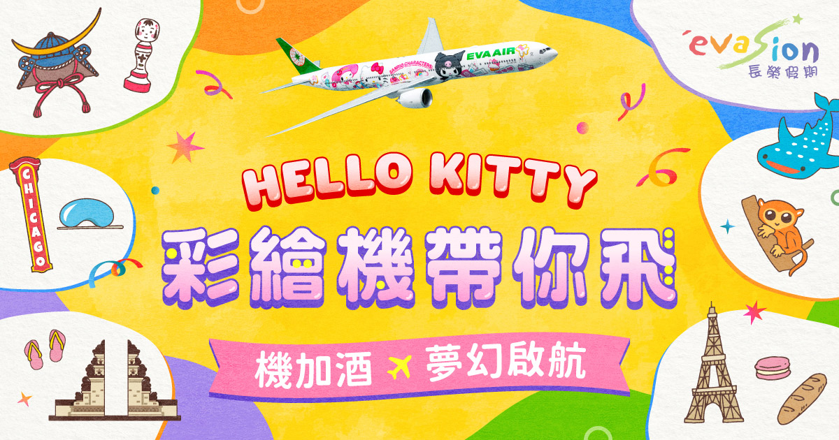 長榮航空與日本三麗鷗聯手,推出六架飛往六個航點、獨一無二的彩繪班機,提供您三麗鷗Hello Kitty主題式機上服務與飛行體驗,包含了獨家造型登機證、三麗鷗機上用品、免稅商品等,超萌卡通造型勢必讓你難以抗拒,失心瘋拍照收藏!現在就和長榮假期一起與Hello Kitty彩繪機翱翔天際,創造夢幻且美好的旅程!