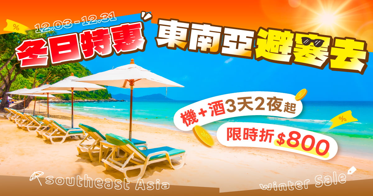 陽光、沙灘、東南亞!想要暖暖過冬,現在就是搶折扣的最佳時機!選好你的東南亞目的地,在長榮假期官網預訂3天2夜起機加酒,享單筆訂單折TWD 800,無論是海島放空還是城市漫遊,輕鬆享受專屬你的避寒旅程~